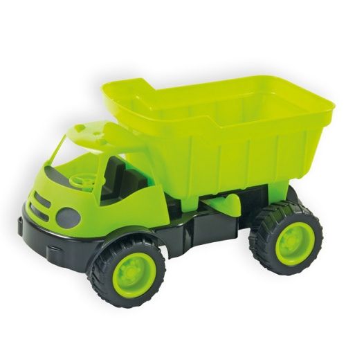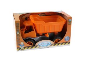 Plastový náklaďák na gumových kolech. Velikost auta je 30 cm.