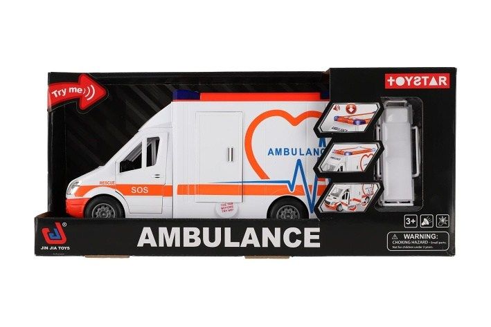 Ambulance je vozidlo, které se využívá při přepravě zraněných pacientů, k dopravě raněných nebo nemocných. Navíc ambulance disponuje lehátkem pro převoz pacientů. Baterie 2x AA jsou součástí výrobku. Ambulance má otevírací dveře a je na setrvačník. Vyrobeno z kvalitního a odolného plastu.