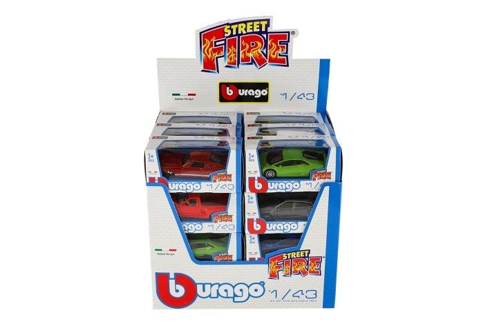 Auto Bburago Street Fire kov/plast 1:43 mix druhů v krabičce 13x6x5,5cm