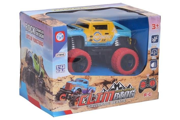 Auto Beast RC na dálkové ovládání. Rozměry 14,5x9x8 cm. Frekvence 27MHz. Světelné efekty. 2xAA baterie do auta a 2xAA baterie do ovladače nejsou součástí balení. Přepínač ON/OFF na spodní straně auta. 3 barevné varianty - modro žluté, modro červené. červené.