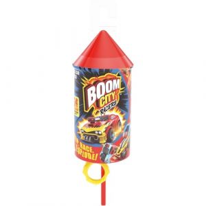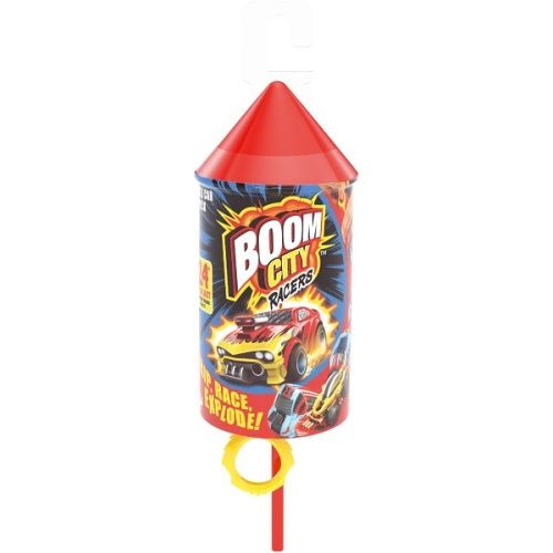 Auta Boom City Racers v balení připomínajícím ohňostroj, balení je překvapení, otevři a odhal jedno z 24 různých vozidel. Vlož auto do vystřelovače, odpal a uvidíš, jak se díky dodatečnému pohonu auto rychle pohybuje. Potom, co auto narazí do překážky vybouchne a rozpadne se na kousky. Složení zpět je velmi jednoduché. Balení obsahuje: auto, vystřelovací lanko, vystřelovač a průvodce sběratele. Rozměr produktu: 22x6x7cm, rozměr autička 8,5x4,5x4cm.