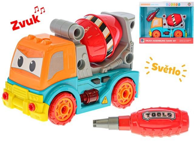Největší zábavou dítěte je, když může něco vytvořit samo. Pak z toho má opravdovou radost. Auto na šroubování je ideální hračkou. Šroubovací domíchávač svítí a vydává zvuky. Má 25 cm. Vhodné pro děti od 3 let.