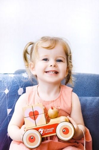 Dřevěný Coco Truck se při tahání bude viklat jako na hrbolaté silnici. Děti mohou stavět kostky na hůlky a vytvářet různé grafiky, jako je srdce, trojúhelník, kruh a čtverec. Pomáhá rozvíjet jejich koordinaci ruka-oko, prostorové schopnosti a představivost.