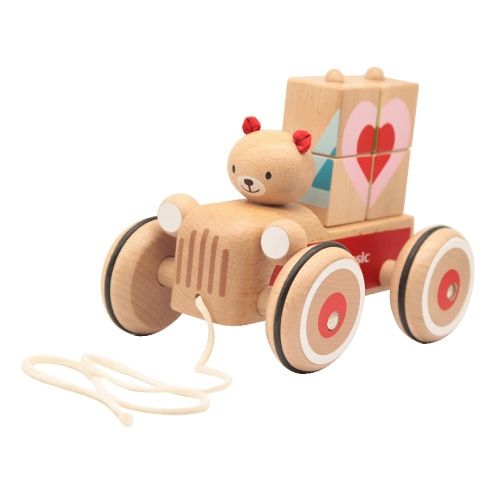 Auto dřevěné tahací s medvědem Coco a kostkami