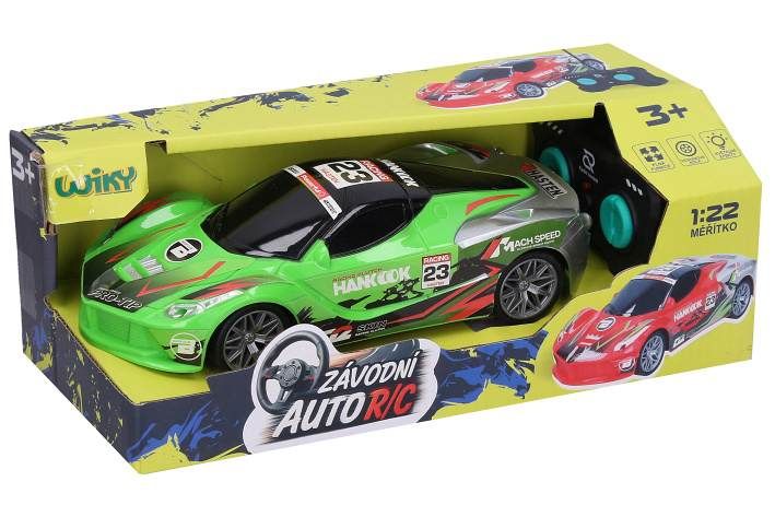 Auto Hankook RC na dálkové ovládání. Rozměry 19x8x4,5 cm. Frekvence 27MHz. Světelné efekty. 3xAA baterie do auta, 2xAA do ovladače nejsou součástí. Přepínač ON/OFF na spodní straně obalu. 2 varianty - zelená, červená.