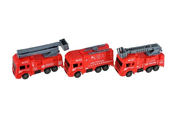 Krásné modely hasičských aut. Auta jsou vyrobena z kvalitního plastu a vybrat si můžete ze 4 druhů. Auto je na zpětné natažení. Velikost aut je cca 11 cm. Varianta se žebříkem, má vysouvací žebřík. Varianta s plošinou má vysouvací plošinu.