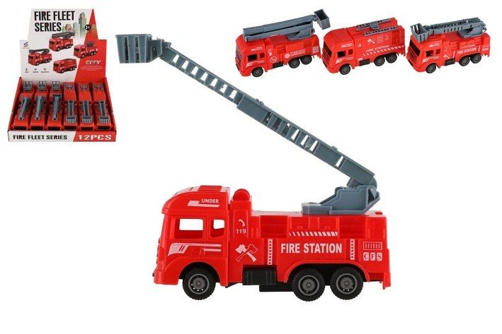 Krásné modely hasičských aut. Auta jsou vyrobena z kvalitního plastu a vybrat si můžete ze 4 druhů. Auto je na zpětné natažení. Velikost aut je cca 11 cm. Varianta se žebříkem, má vysouvací žebřík. Varianta s plošinou má vysouvací plošinu.