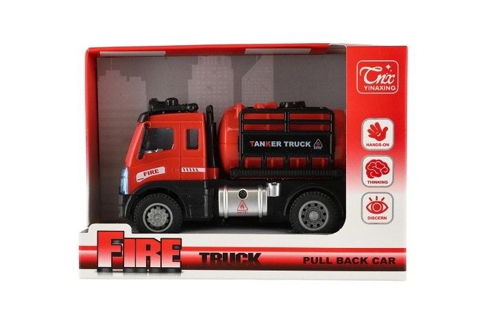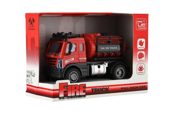 Auto hasiči s cisternou plast 12cm na zpětné natažení v krabičce 17x12x8cm