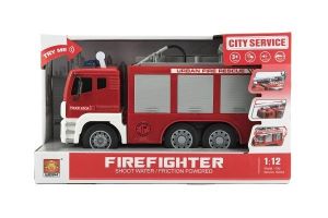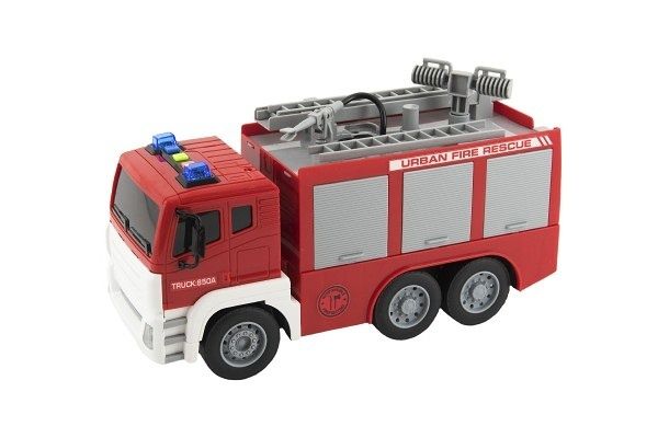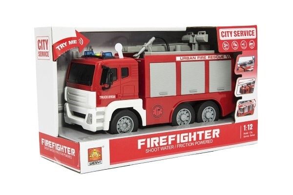 Auto hasiči stříkací vodu 32cm plast na setrvačník na bat. se zvukem se světlem v krabici