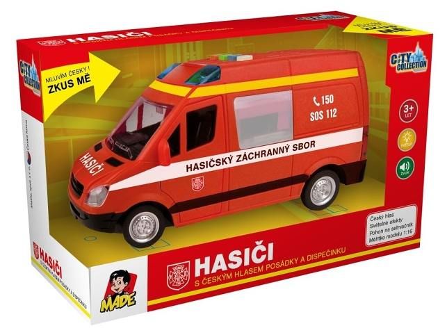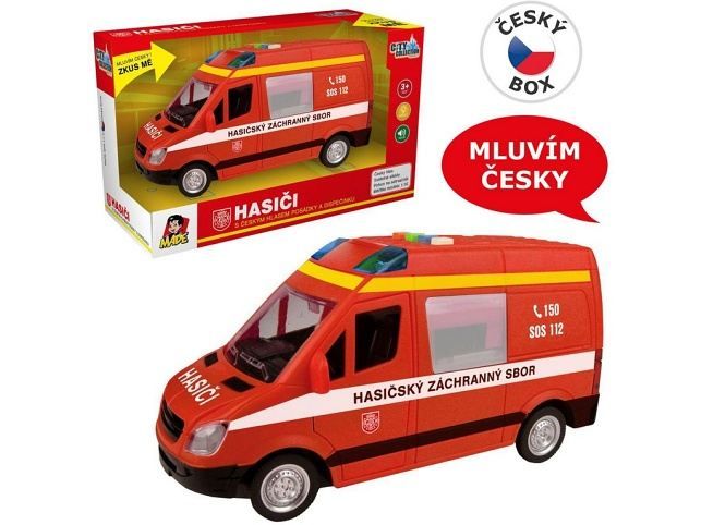 Auto hasičská dodávka, na setrvačník s reálným hlasem posádky, 21cm