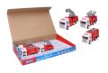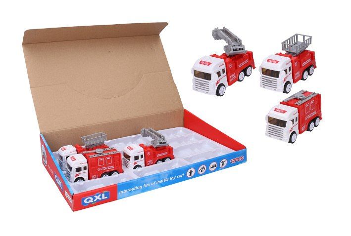 Auto hasičské. Velikost 12 cm. Na setrvačník. 12 ks display box. 3 varianty.