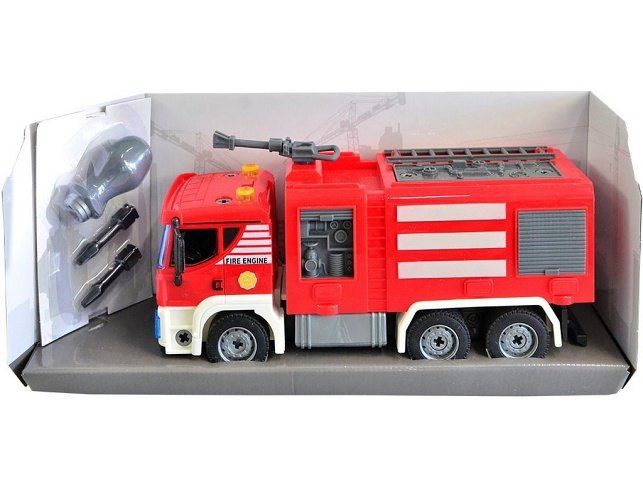 Auto hasičské ke šroubování, se světlem a zvukem, 26,8 cm, na baterieNejvětší zábavou pro dítě je, když může něco vytvořit samo. Pak z toho má opravdovou radost. Auto na šroubování je ideální hračkou. Dítě si auto složí a bude mít skvělý pocit z dobře odvedené práce. Hračka rozvíjí motoriku dítěte, logické myšlení a trpělivost. Auto má zvukové a světelné efekty. Rozměr produktu: 26,8 x 10 x 13,4 cmNapájení: baterie AG13, jsou součástí balení. Materiál: plastDoporučený věk: 3 +