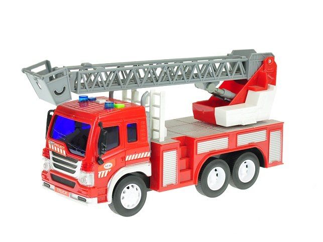 Auto hasičské se žebříkem 27cm 1:16 na setrvačník na baterie se světlem a zvukem