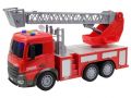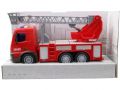 Auto hasičské se žebříkem, na setrvačník, na baterie, se světlem a zvukem, 25 x 8 x 14 cm