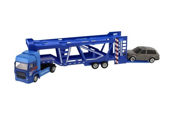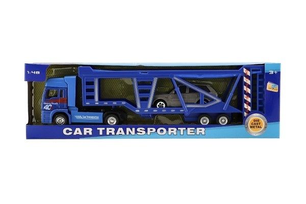Auto kamion přepravník + auto kov/plast 32cm na volný běh v krabici 36x11x6cm