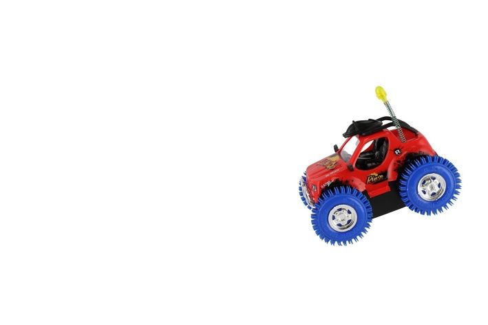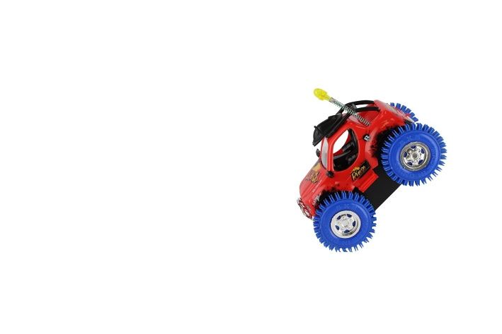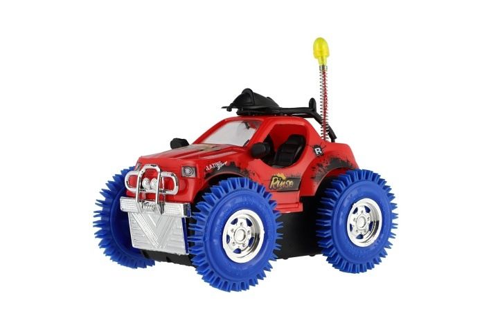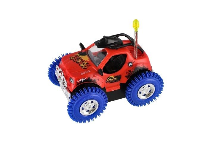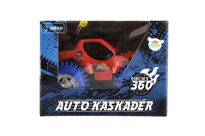 Parádní kaskadérské auto, které zvládne neuvěřitelné triky! Při nárazu do překážky se otočí o 360° a pokračuje v jízdě. Díky barevnému provedení, světelným efektům a odolným kolům je ideální hračkou pro všechny malé závodníky. Odolná plastová konstrukce. Napájení na baterie 3 x AA. Vhodné pro děti od 3 let.