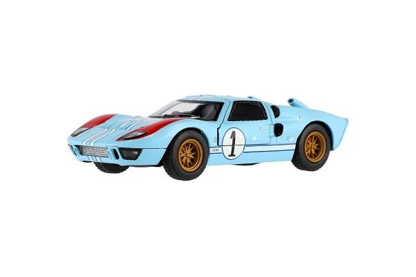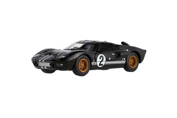 Krásný kovový model auta Ford GT40 MKII Herit v měřítku 1:32. Autíčko má otevírací dveře a je na zpětné natažení. Dostupné ve čtyřech barevných variantách.