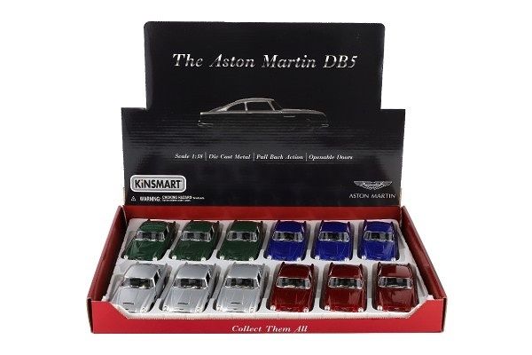 Krásný kovový model auta Aston Martin DB5 v měřítku 1:38. Autíčko má otevírací dveře a je na zpětné natažení. Dostupné ve čtyřech barevných variantách.