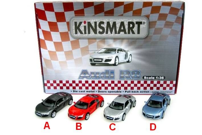 Auto Kinsmart Audi R8 kov 13cm na zpětné natažení 4 druhy