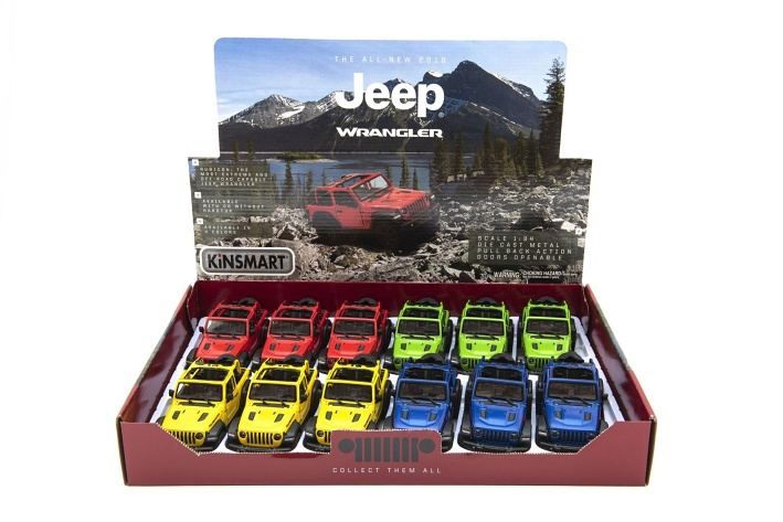 Auto Kinsmart Jeep Wrangler 2018 otevřená střecha 12cm kov/plast 4 barvy na zpětné nat.