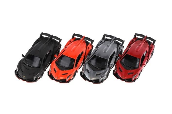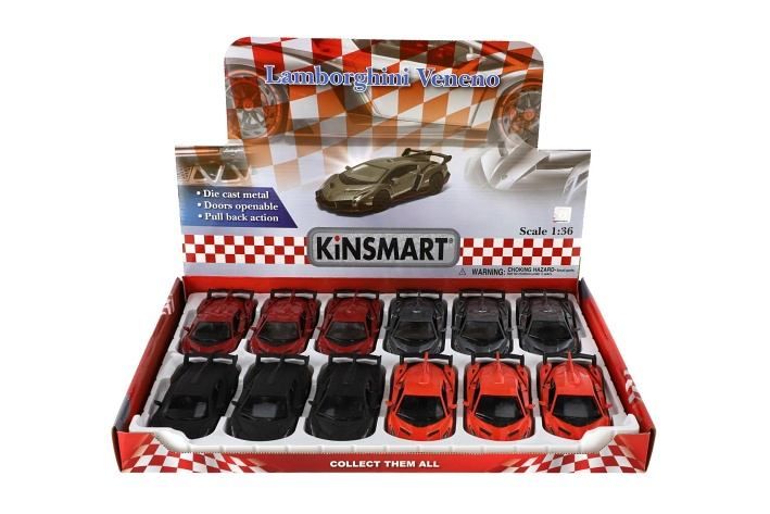 Auto Kinsmart Lamborghini Veneno kov 13cm na zpětné natažení asst 4 barvy 12ks v boxu
