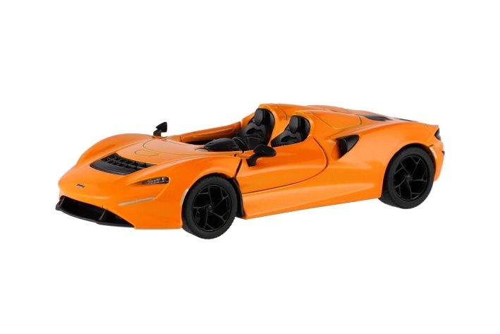 Extrémní výkon, otevřená konstrukce a luxusní styl – to je McLaren Elva, nyní jako detailně propracovaný kovový model od značky Kinsmart. Auto je vybaveno zpětným natažením (pull-back) a otevíracími dveřmi, což z něj dělá perfektní hračku i sběratelský kousek.