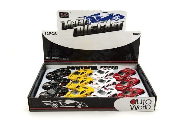 Auto kov/plast 8,5cm asst 4 barvy na zpětné natažení 12ks v boxu