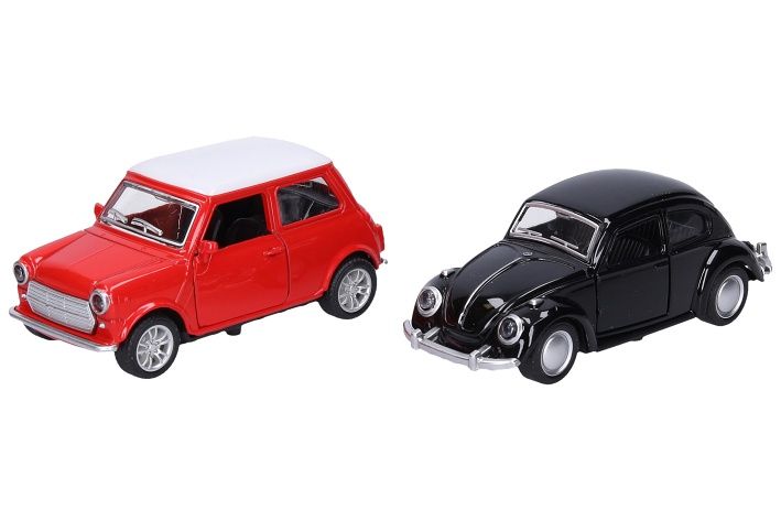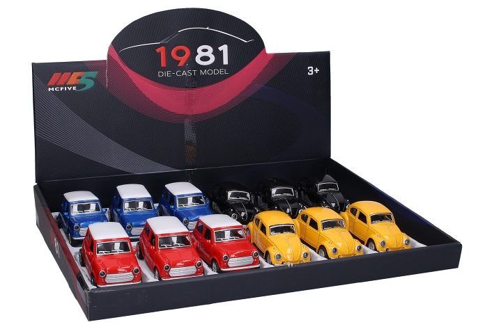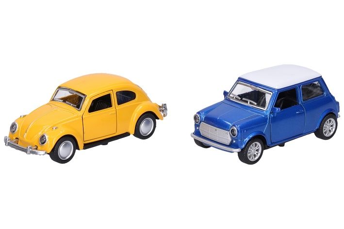 Auto kovové. Velikost 11 cm. Na zpětné natažení. Otevírací dveře. 12 ks display box. 6 variant.