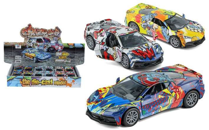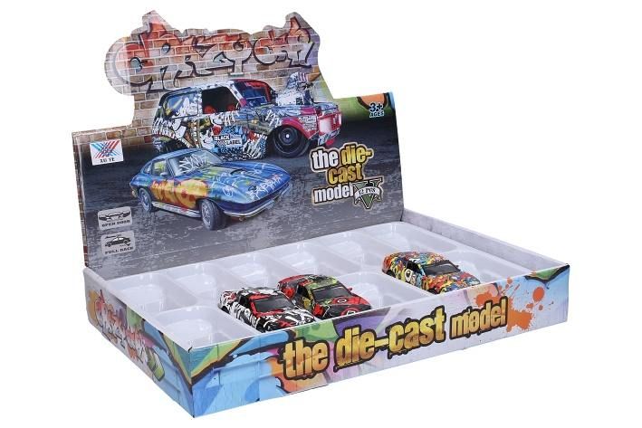 Auto kovové. Velikost 12 cm. Otevírací dveře. Zpětné natažení. 12 ks display box.
