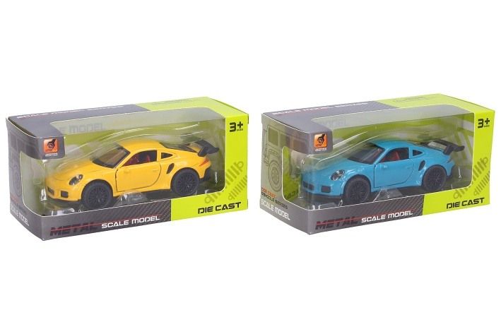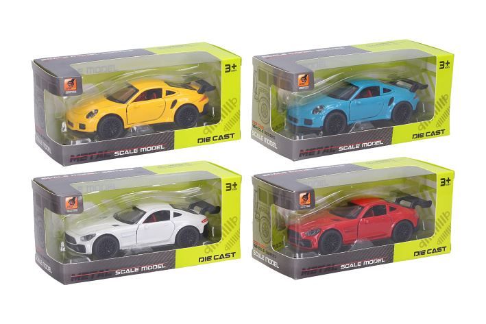 Auto kovové. Rozměry 12x5,2x3,6 cm. Na zpětné natažení. Otevírací dveře a zadní okno. Bez světelných a zvukových efektů. 4 varianty - červená, žlutá, bílá, modrá.