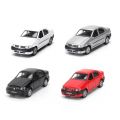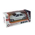 Kovové autíčko s otevíracími dveřmi, při zatlačením na auto, vydává různé zvuky a svítí. Auto jezdí na zpětný setrvačník. Obsahuje 3 ks baterií typu AG13/LR44.