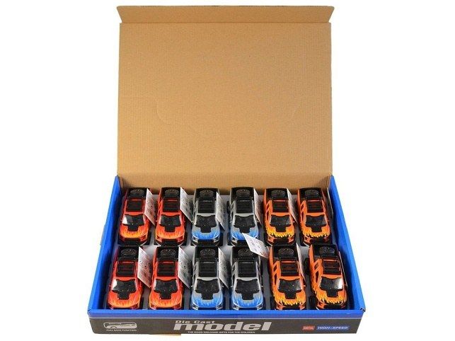 Auto kovové na zpětný chod, 12 ks v boxu, 12 cm