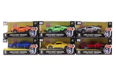 Kovové sportovní auto na zpětný chod. Rozměry auta cca 11x5x3 cm. Rozměry balení cca 15x7x7 cm. Věk 3+