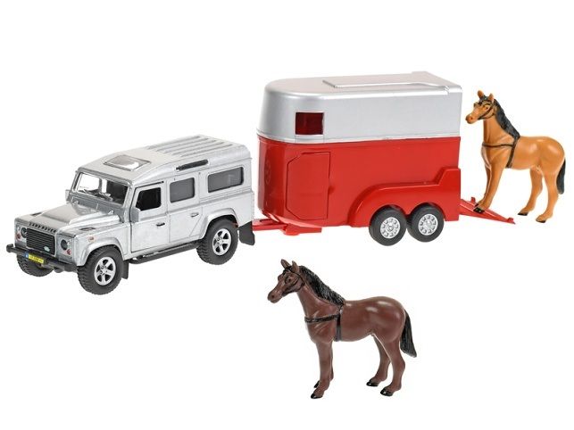 Auto Land Rover Defender kov 14cm zpětný chod s přívěsem pro koně 11cm, 2 druhy