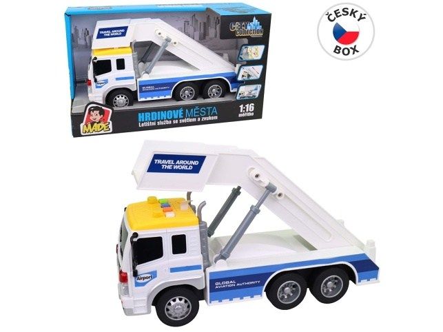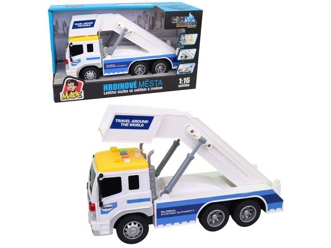 Auto letištní služby, vysunovací a polohovací schody, na baterie, světlo a zvuk, 26 cm. Auto, které se jen tak nevidí a proto bude skvělou a zábavnou hračkou. Jak už název napovídá má spoustu funkcí. Je třeba vyložit kufry z letadla? Jde se na to! Hračka je určena pro děti 3+. Rozměr hračky je 26 x 10 x 14 cm. Materiál hračky je plast. Balení hračky je otevřený box. Produkt je určený pro kluky. Ke zprovoznění produktu jsou potřeba 3 AG13 baterie. Baterie jsou součástí balení.