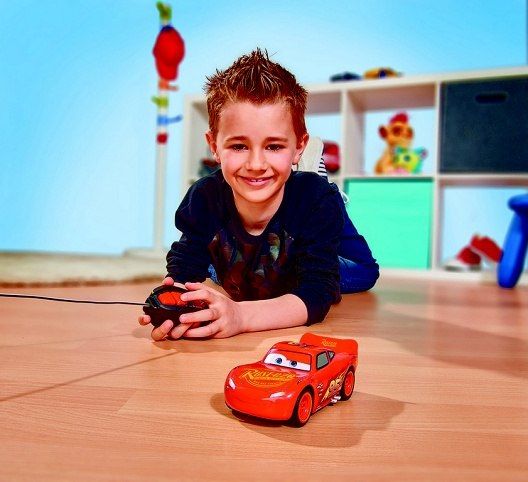 Auto na dálkové ovládání Blesk McQueen v licenci Cars 3. 1 kanál (jezdí dopředu, vzad zatáčí), frekvence 27 MHz. Měřítko 1:32, délka 14 cm.