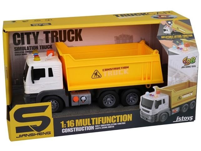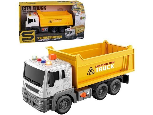 Auto nákladní na setrvačník, se světlem a zvukem, na baterie, 24,5 x 10 x 11 cm. Při stavebních úpravách je nejvytíženější nákladní auto. Tak neváhejte a pořiďte alespoň jedno. Bonusem jsou zvukové a světelné efekty. Hračka je určena pro děti 3+. Rozměr hračky je 24,5 x 10 x 11 cm. Materiál hračky je plast. Balení hračky je otevřený box. Produkt je určený pro kluky. Ke zprovoznění produktu jsou potřeba 3 LR44 baterie. Baterie jsou součástí balení.
