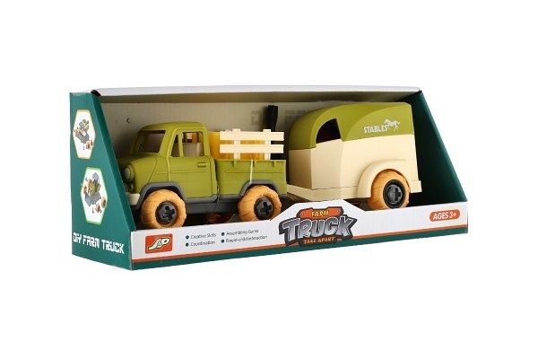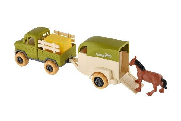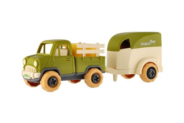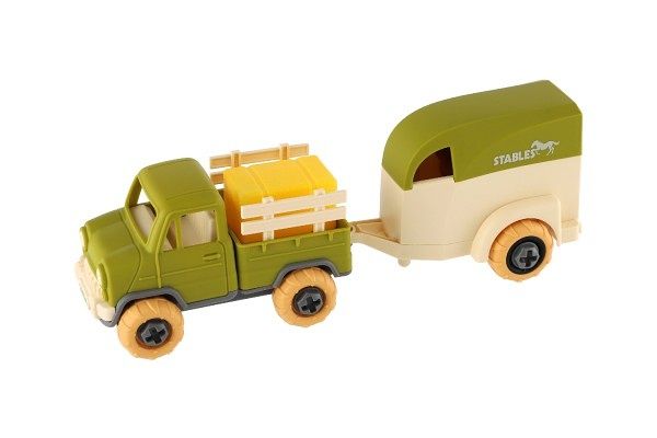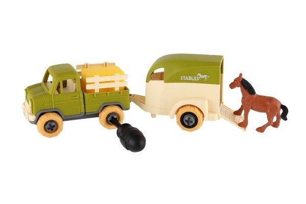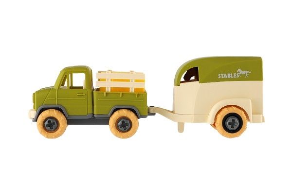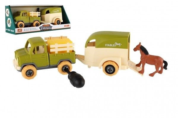 Auto nákladní s vlekem na koně šroubovací plast 25cm se šroubovákem na volný chod v krab.