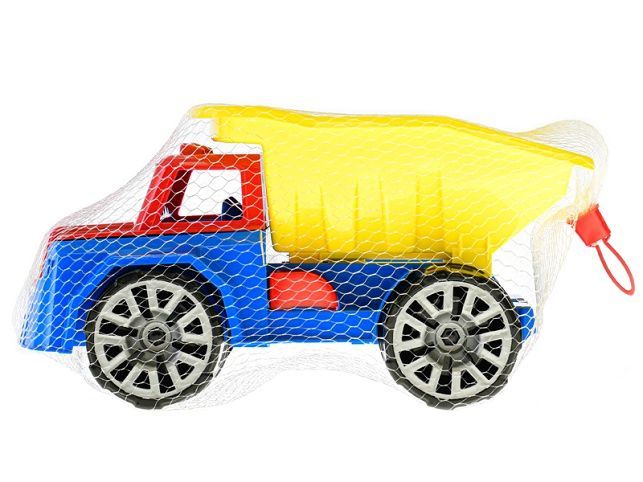 Potřebujete pořádné auto na písek? Toto plastové autíčko o velikosti 29 cm umožní každému "řidiči" naložit hromadu písku a vyrazit s ním na stavbu hradu. Protože je na volný chod, snadno se udržuje. Stačí jej opláchnout v teplé vodě, dobře vysušit a malý stavitel s ním může jezdit i doma na koberci a odvézt náklad kostek.