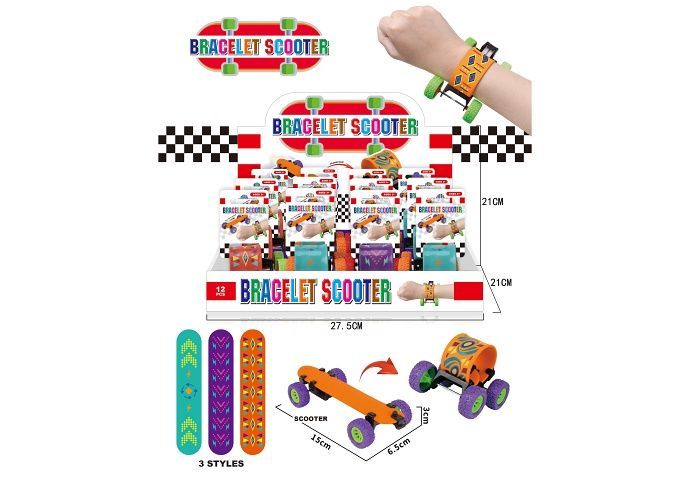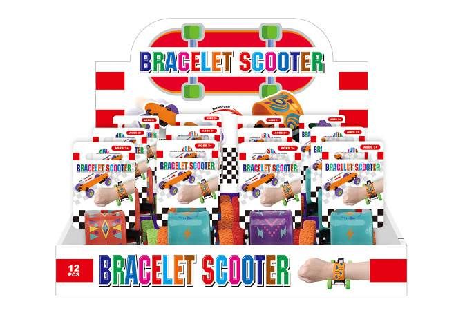Auto náramek. Rozměry 15x3x6,5 cm. Na zpětné natažení. 12 ks display box. 3 varianty - červená, zelená, oranžová.