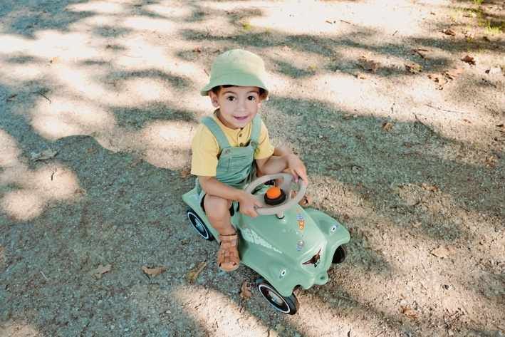 Robustní auto odstrkovadlo s ergonomickým sedadlem v šalvějové barvě s mořskými nálepkami. Praktický volant s mechanickým klaksonem. Rozměry výrobku 58 x 30 x 38 cm. Max. nosnost 50 kg. Hmotnost 3,6 kg. Vyrobeno v Německu.