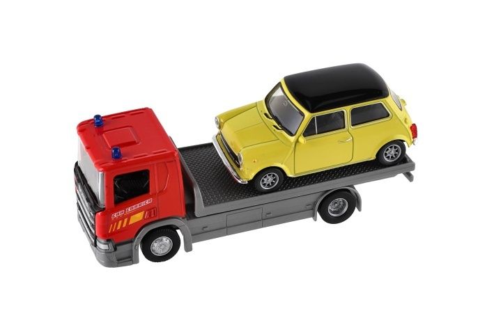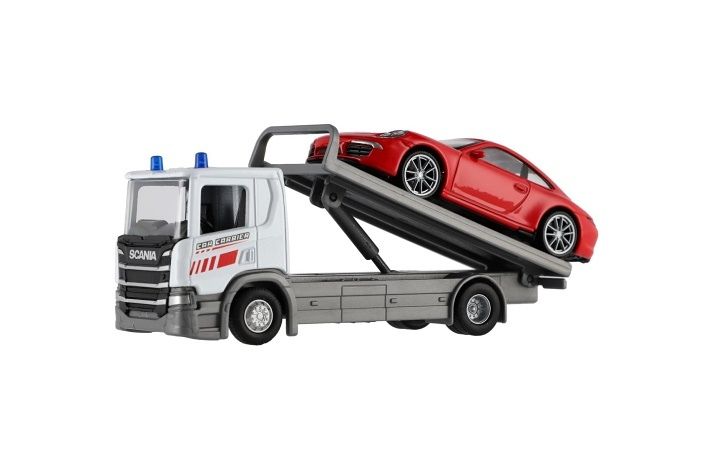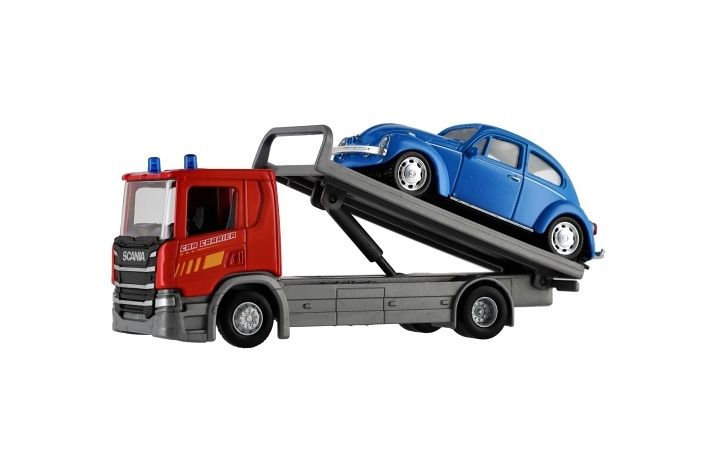 Auto odtahovka Welly Scania P320 doplní každý vozový park. V balení najdete i auto, obě auta jezdí na volný chod.