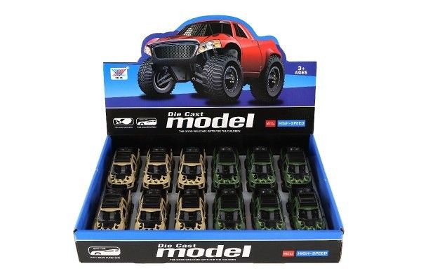 Model krásného terénního auta, které musí mít každý dobrodruh! Hračku ocení každý malý milovník aut a pick-upů. Auto jezdí na zpětné natažení.