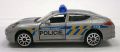 Kovové policejní auto Porsche na volnoběh. Pohyblivé a/nebo otevírací část. Délka 7,5 cm.