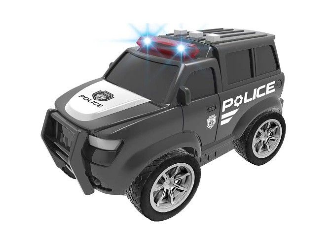 Auto policejní, na setrvačník, s efekty, černé. Rozměry 22,5x11,5x14 cm. Vydává světelné a zvukové efekty. Baterie 3xAG13, součástí balení.