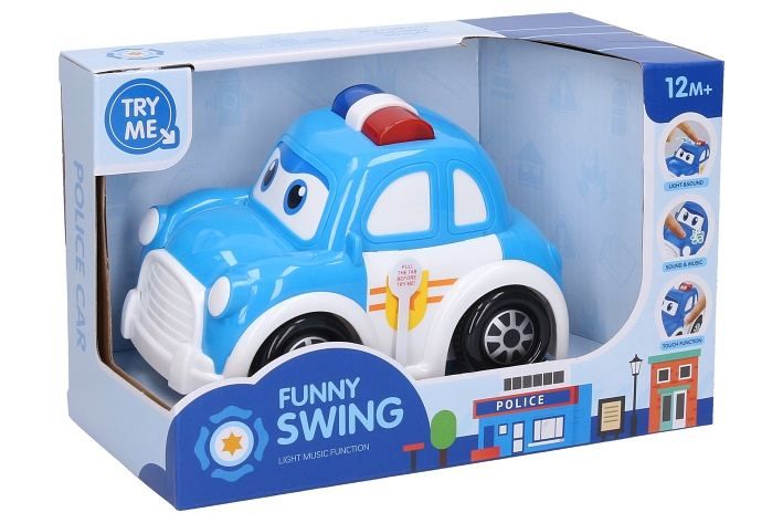 Auto policejní s efekty. Velikost 15cm. Světelné a zvukové efekty. Volná kola. 2xAAA baterie součástí.