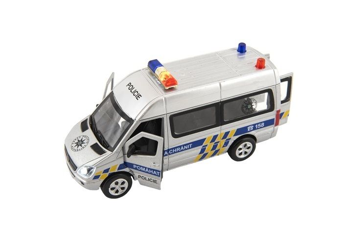 Kovové autíčko pro malé policisty je vyrobeno s plastovými doplňky. Malý model jezdí na zpětné natažení, má otevírací přední a zadní dvěře, vydává zvuky startování a houkačky, má efekty blikajících světel.