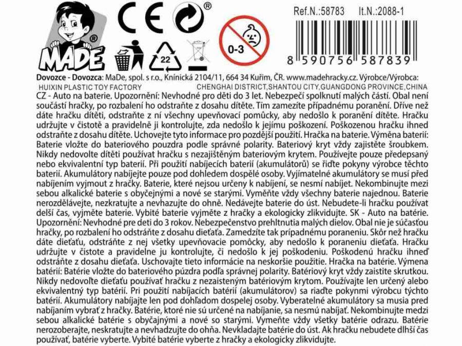 Toto autíčko policie na baterie je vyrobeno z kvalitního plastu a má rozměry 22 x 9 x 10 cm. Je určeno pro kluky od 3 let. Balení obsahuje jedno autíčko policie, které je poháněno 3 bateriemi typu AA (nejsou součástí balení). S tímto autíčkem si Vaše dítě může hrát a zažít spoustu zábavy. Ideální hračka pro malé kluky, kteří mají rádi auta a policejní příběhy. Autíčko policie na baterie je skvělým doplňkem do jejich sbírky hraček. Doufáme, že toto autíčko policie přinese Vašemu dítěti hodně radosti a zábavy!