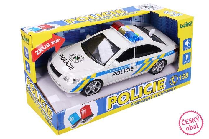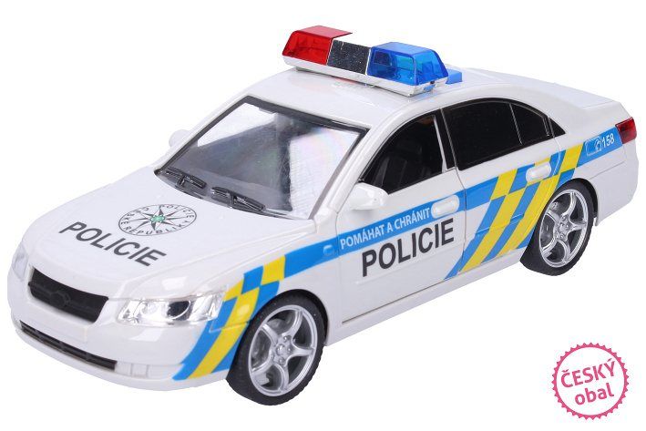 Policejní auto (český design). Velikost 24 cm. Se světelnými a zvukovými efekty. 3xAG13 baterie součástí.