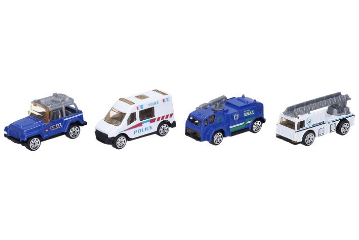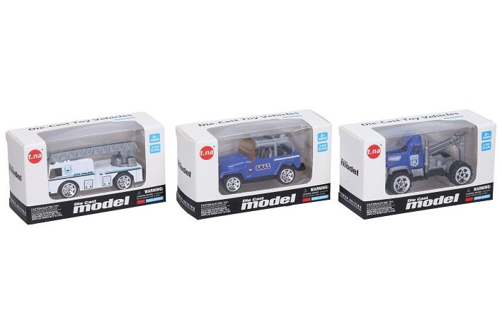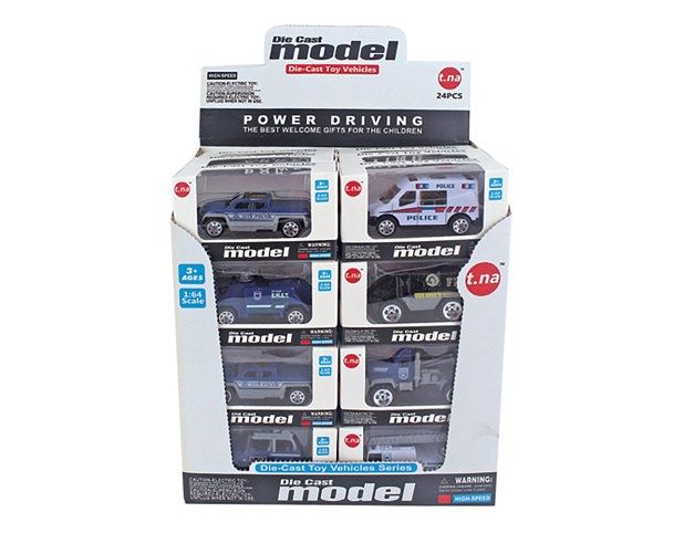 Auto policie volná kola. Velikost 7,5 cm. Display box 24 ks. 6 variant.